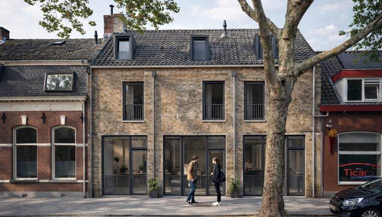 De binnenstad van Tilburg kenmerkt zich door een unieke mix van typologieën, waarbij grondgebonden woningen en gestapelde bouw elkaar afwisselen. Dit project sluit hierop aan door binnen de ontwikkeling te kiezen voor drie standswoningen.